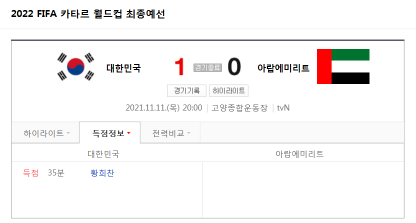 대한민국 대 UAE 경기 하이라이트 (2021년 11월 11일 목요일)