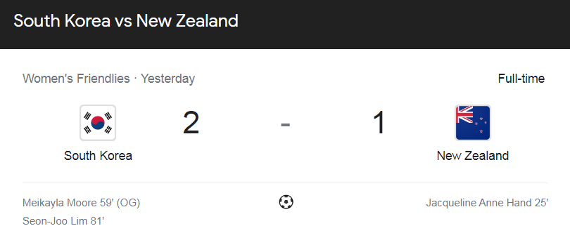 경기 결과 : 대한민국 승리