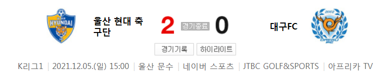 2021 시즌 K리그1 - 38라운드 경기 (2021년 12월 5일)