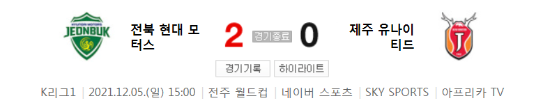 38라운드 K리그1 - 전북 대 제주 (2021년 시즌 축구 경기 하이라이트)
