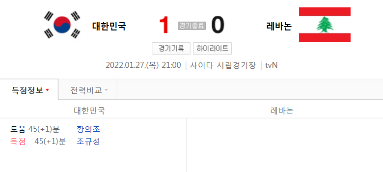 대한민국 대 레바논 경기 하이라이트 (2022년 1월 27일 목요일)